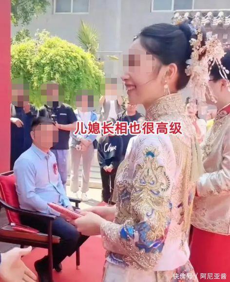 女儿娶妻是父母最欢欣的日子,这位女士也不例外,她在喝完儿媳敬的茶后坐窝笑得合不拢嘴,并马上递上一个大红包。她的笑颜明媚动东说念主,相等劝诱东说念主。